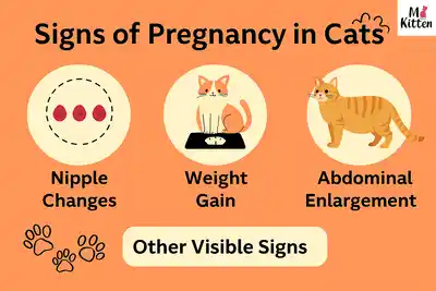Soon after conception or in the 1st and 2nd weeks, your cat would not show any signs of pregnancy. But in the 3rd week, things become a little more noticeable. After that period, you will notice that your cat will no longer go into heat, and her body will begin to change. The common change will be a swollen body, pink nipples, and a larger abdomen. Some other signs may be increased appetite and vomiting like that of a human. Pregnant felines often need more of your time as they become more affectionate than usual.